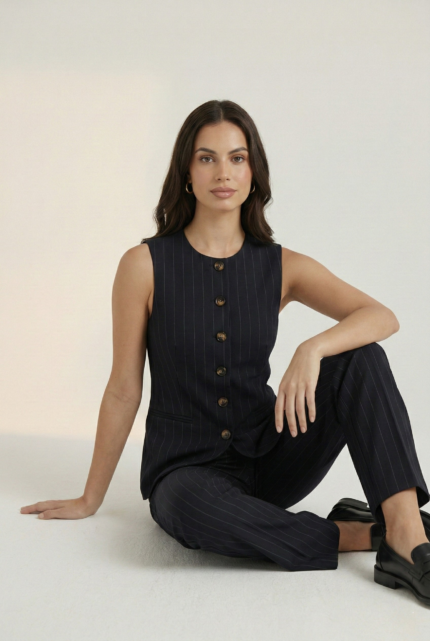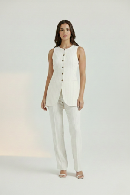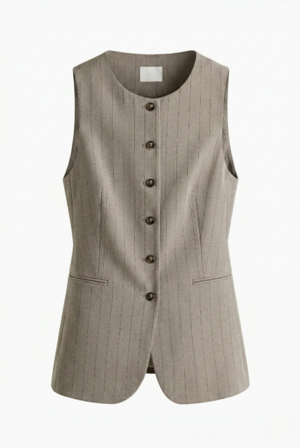 Darius Pinstriped Waistcoat – Beige