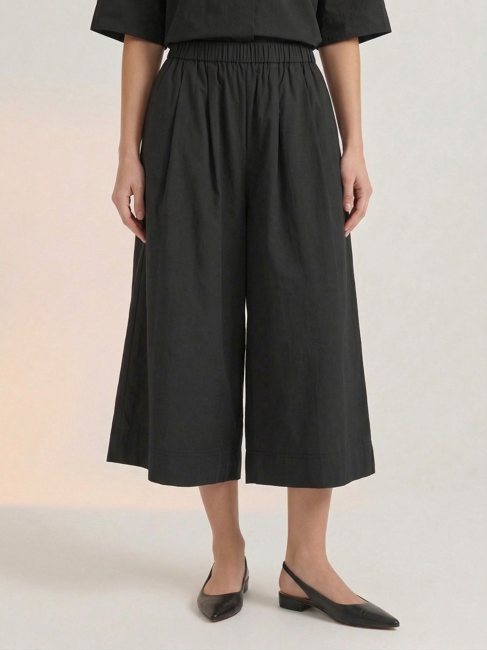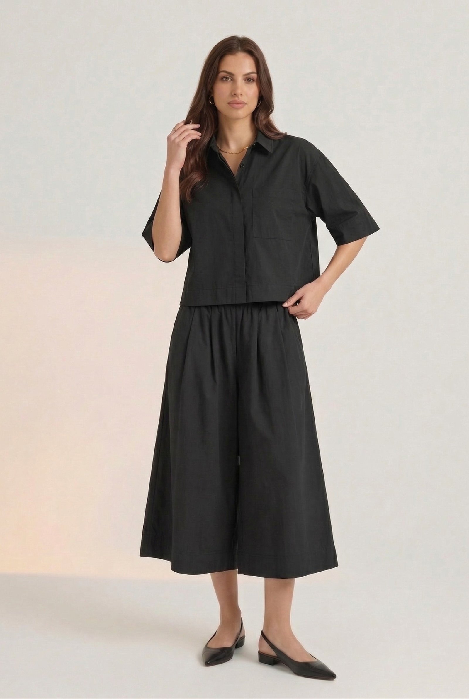 The Aspen Culottes are a breezy pair crafted from lightweight 100% cotton for all-day comfort. With its free size fit and effortless silhouette, this bottom can be worn together with our Aspen Shirt or styled separately—perfect as a relaxed statement or a minimal outer layer. Ideal for casual outings, travel days, or lounging in style. Machine wash cold or dry clean; do not tumble dry.