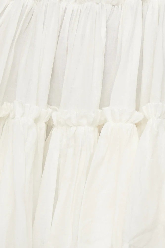 The dress is really preety and the ruffles looked neat the white colour gives a clean and fresh feel also light and comfortable to wear