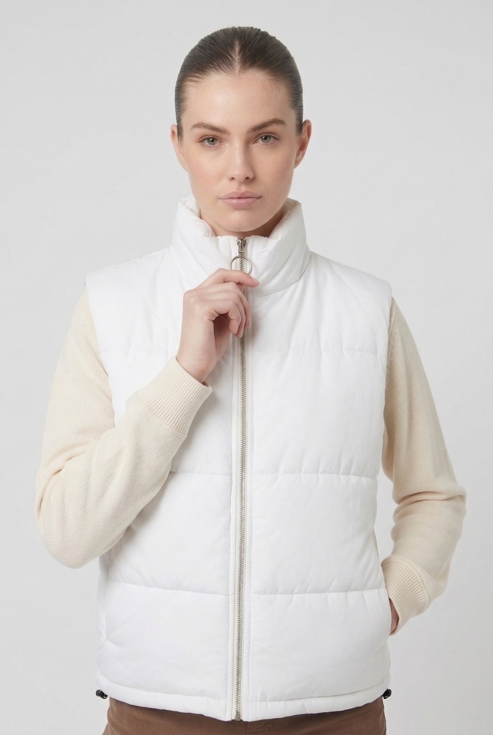 Designed for effortless layering, this lightweight yet insulated vest provides cozy comfort without the bulk. Its sleek, tailored fit flatters your silhouette, while the high-quality quilted fabric ensures durability and lasting warmth. Featuring a zip-up front, deep side pockets, and a soft inner lining, the Daisy Puffer Vest is ideal for casual outings or dressing up your cold-weather look.