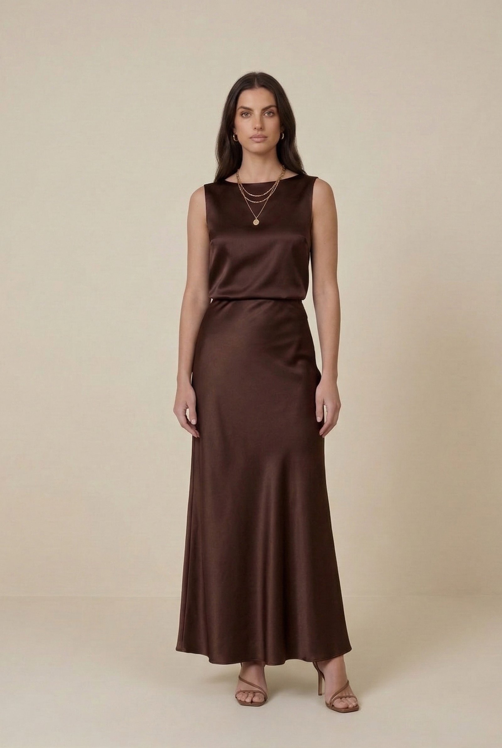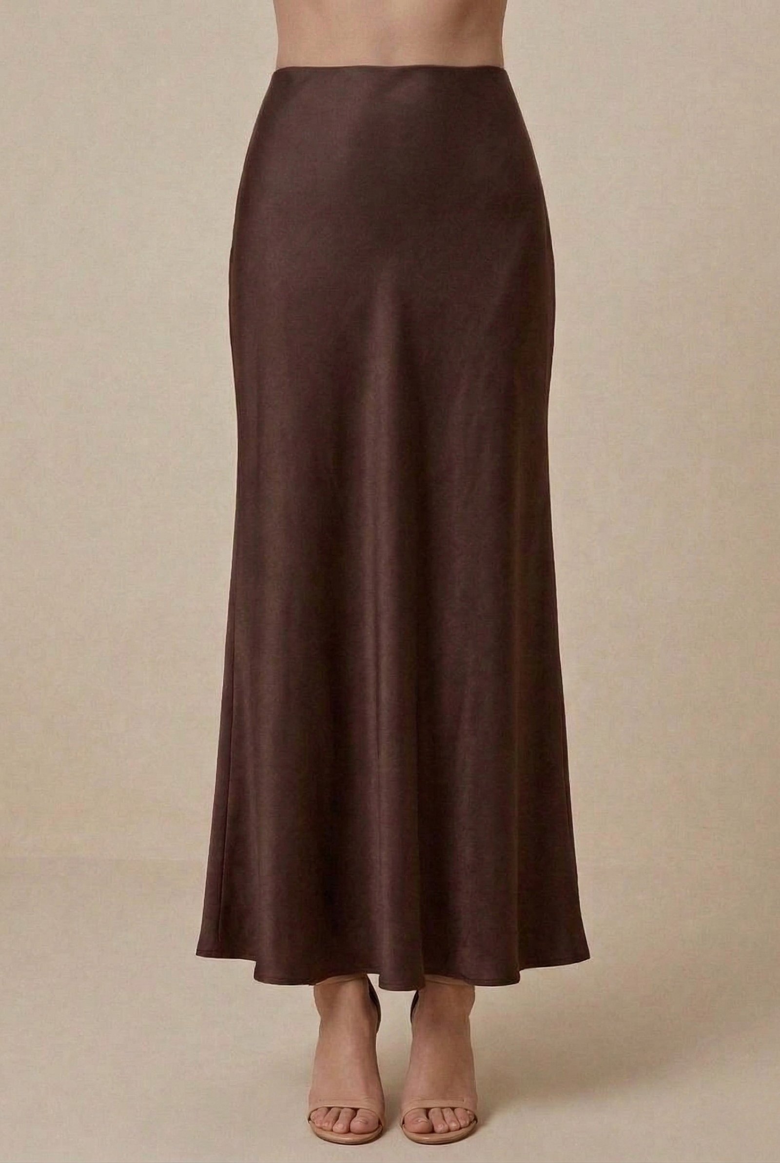 The Luna Skirt is an elegant full-length piece crafted from luxurious crepe satin that drapes beautifully and flatters the figure. Its high-waisted silhouette and fluid finish create a sleek, sophisticated look perfect for both day and night. Style it with a structured blouse or a satin cami, add gold jewelry, and finish with heels or embellished flats. Ideal for evening events, formal dinners, art shows, or upscale workwear.