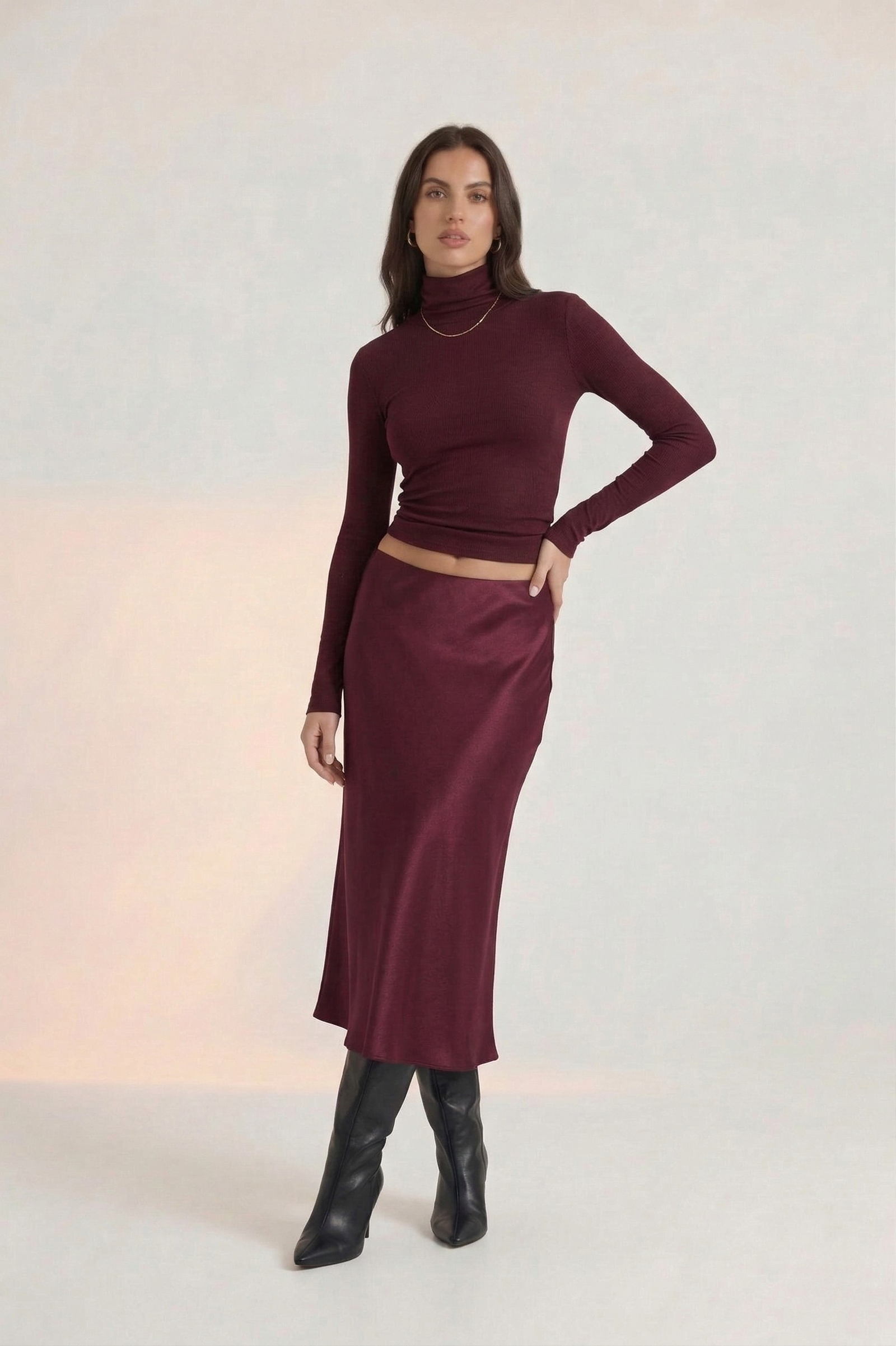 The Luna Skirt is an elegant full-length piece crafted from luxurious crepe satin that drapes beautifully and flatters the figure. Its high-waisted silhouette and fluid finish create a sleek, sophisticated look perfect for both day and night. Style it with a structured blouse or a satin cami, add gold jewelry, and finish with heels or embellished flats. Ideal for evening events, formal dinners, art shows, or upscale workwear.