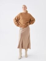 The Luna Skirt is an elegant full-length piece crafted from luxurious crepe satin that drapes beautifully and flatters the figure. Its high-waisted silhouette and fluid finish create a sleek, sophisticated look perfect for both day and night. Style it with a structured blouse or a satin cami, add gold jewelry, and finish with heels or embellished flats. Ideal for evening events, formal dinners, art shows, or upscale workwear.