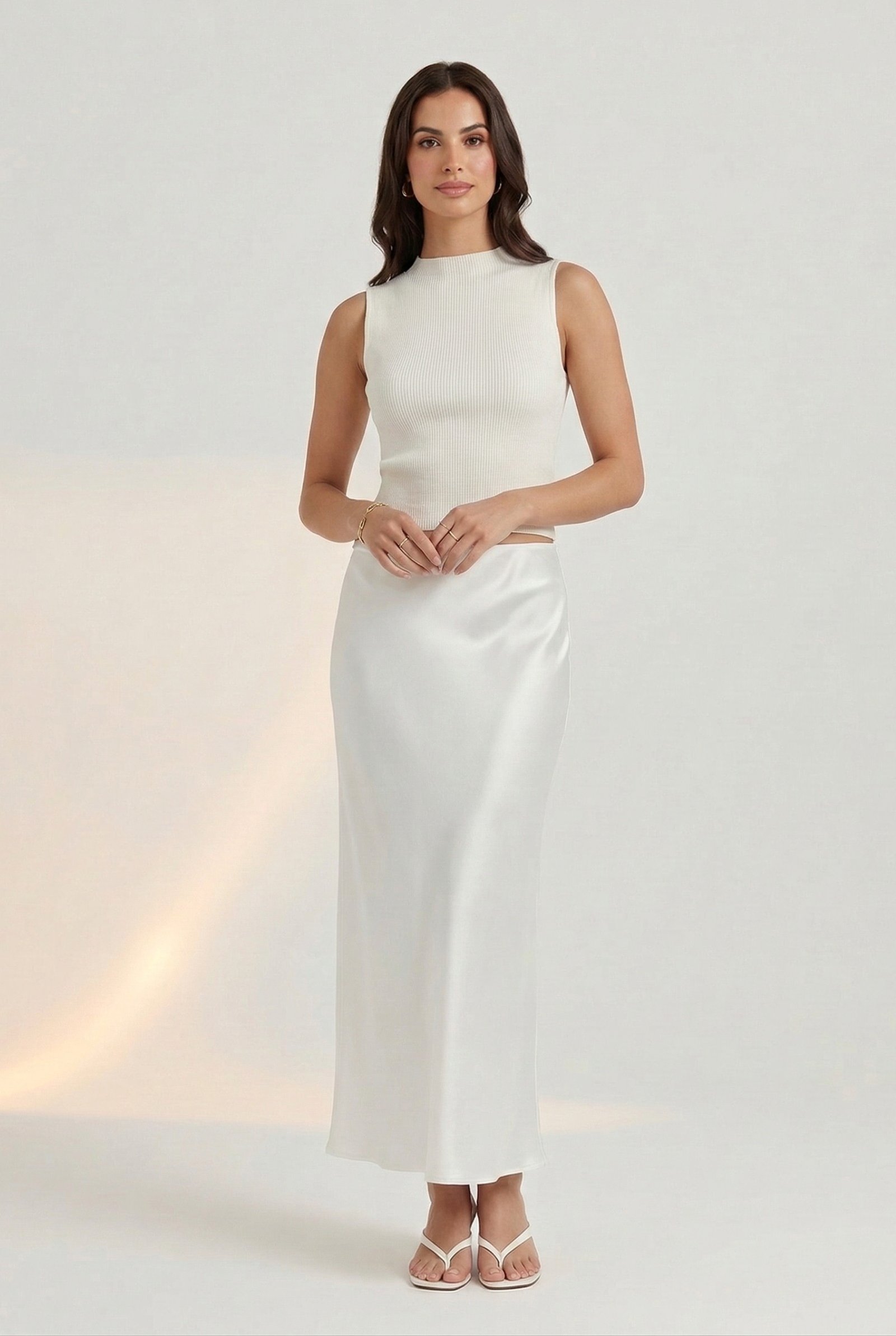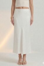 The Luna Skirt is an elegant full-length piece crafted from luxurious crepe satin that drapes beautifully and flatters the figure. Its high-waisted silhouette and fluid finish create a sleek, sophisticated look perfect for both day and night. Style it with a structured blouse or a satin cami, add gold jewelry, and finish with heels or embellished flats. Ideal for evening events, formal dinners, art shows, or upscale workwear.