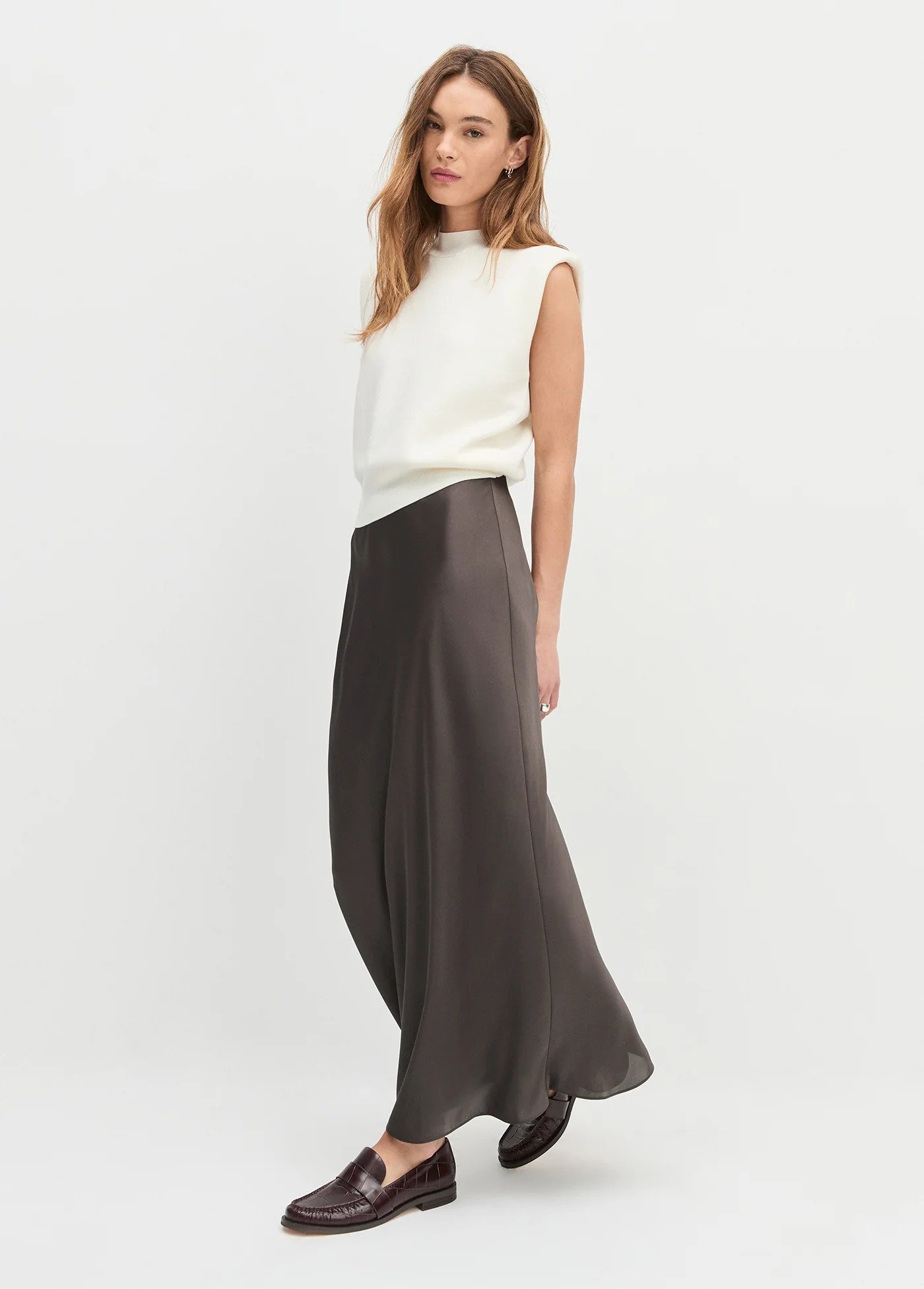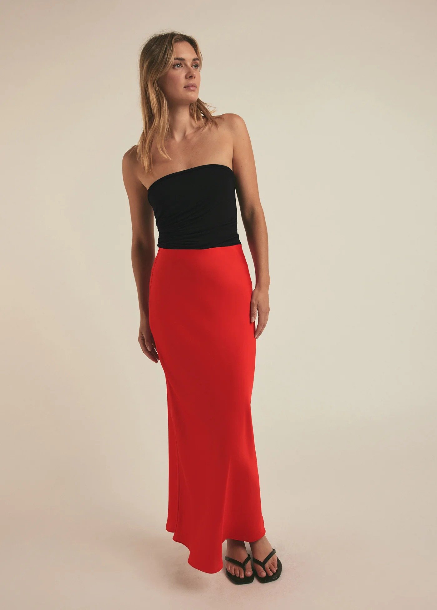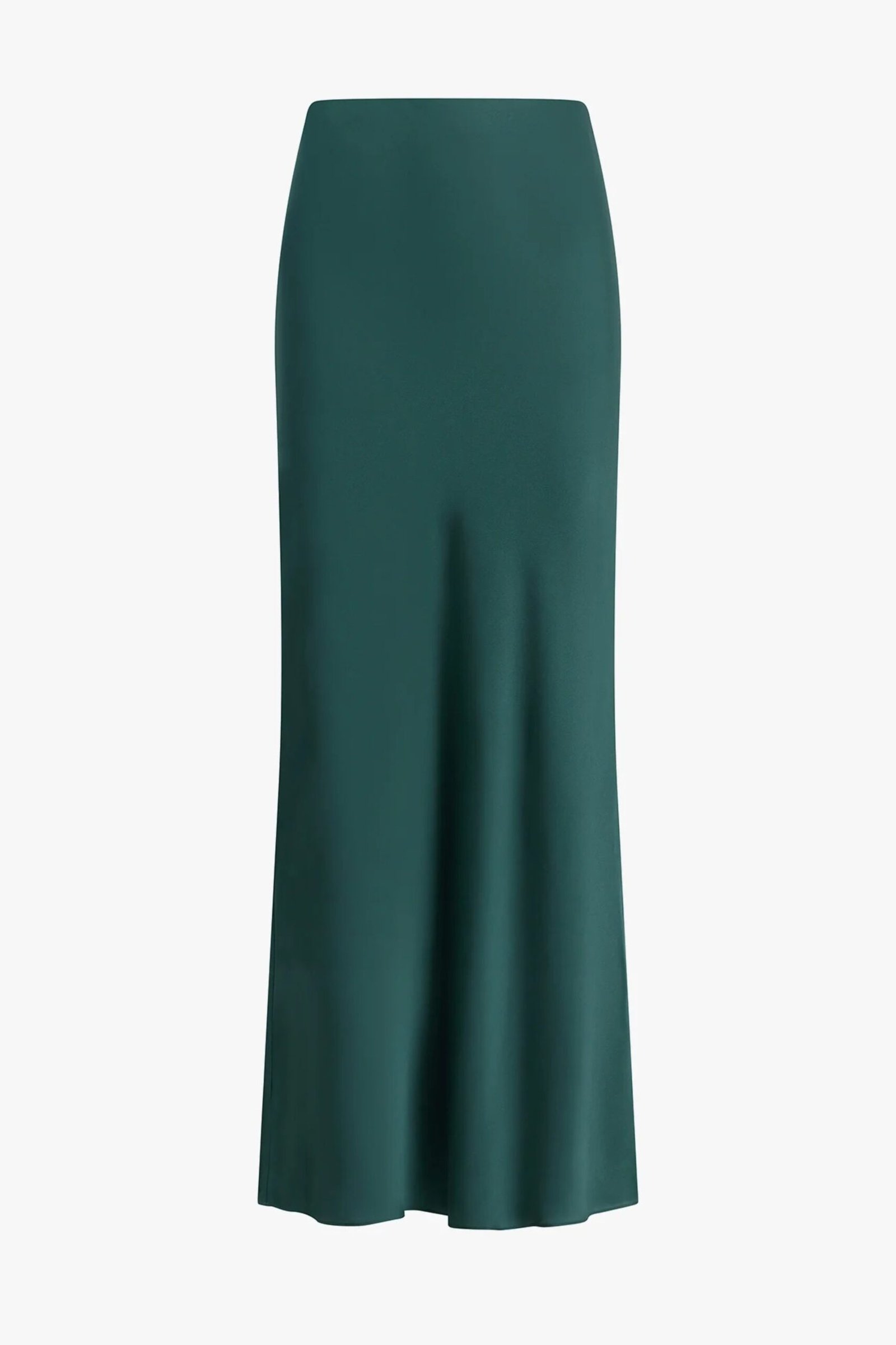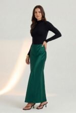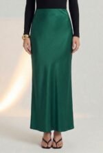 The Luna Skirt is an elegant full-length piece crafted from luxurious crepe satin that drapes beautifully and flatters the figure. Its high-waisted silhouette and fluid finish create a sleek, sophisticated look perfect for both day and night. Style it with a structured blouse or a satin cami, add gold jewelry, and finish with heels or embellished flats. Ideal for evening events, formal dinners, art shows, or upscale workwear.