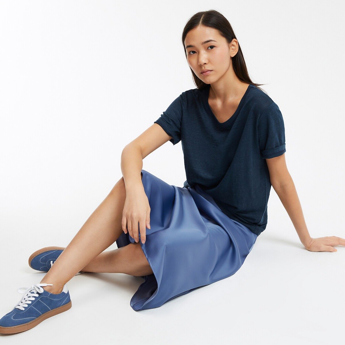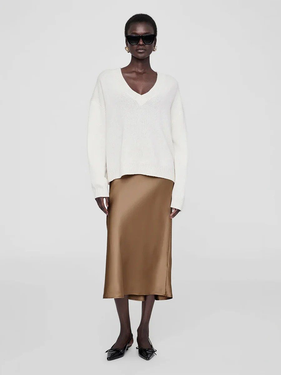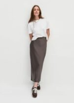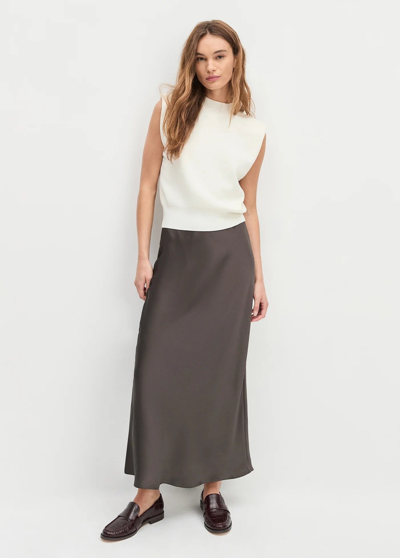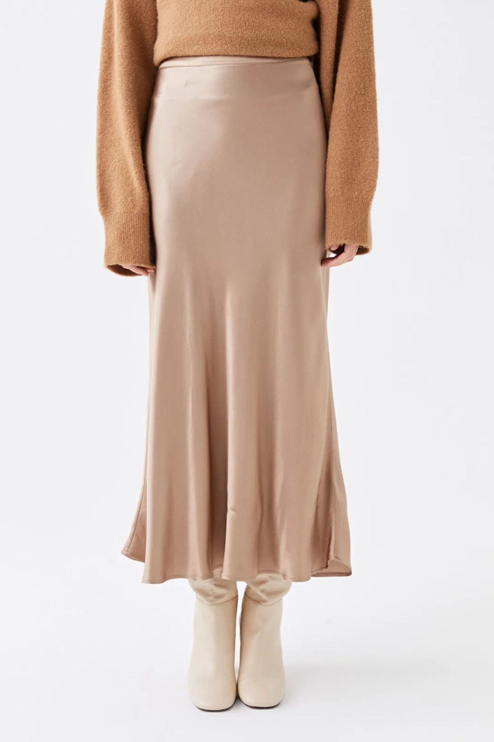 The Luna Skirt is an elegant full-length piece crafted from luxurious crepe satin that drapes beautifully and flatters the figure. Its high-waisted silhouette and fluid finish create a sleek, sophisticated look perfect for both day and night. Style it with a structured blouse or a satin cami, add gold jewelry, and finish with heels or embellished flats. Ideal for evening events, formal dinners, art shows, or upscale workwear.