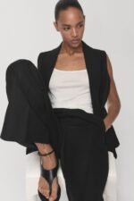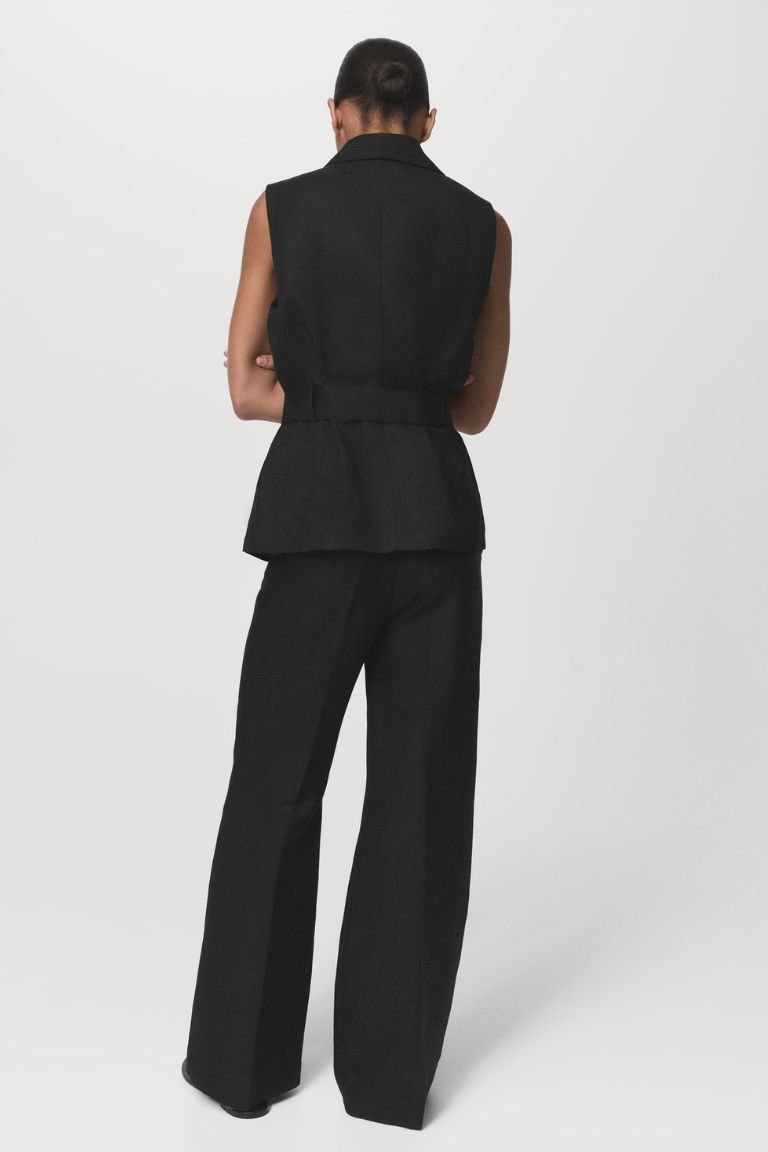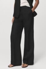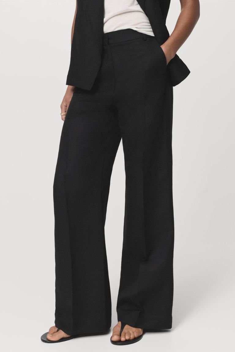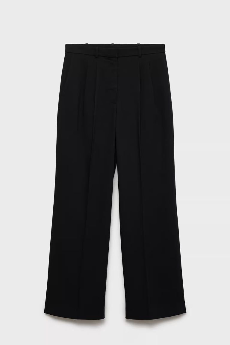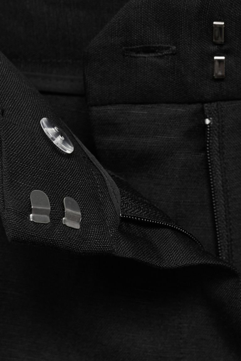 Straight Design. High waist. Belt loops. Two side pockets. Concealed button, hook and zip fastening. Total look.