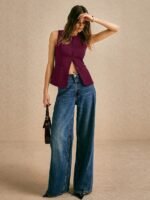 Long, fitted suit waistcoat in woven fabric with a round neckline and buttons at the front. Shaping darts at the waist, jetted front pockets, and a single back vent. Lined.